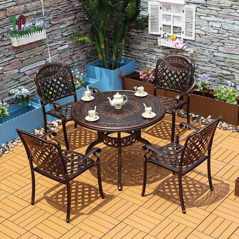 Bạn có thể bố trí bàn ghế sân vườn hợp kim nhôm đúc này vào khu vực sân vườn để gia đình thư giãn thưởng trà những lúc rảnh rỗi. Không chỉ tiện lợi, dễ sử dụng mà còn mang đến cho sân vườn bạn cảm giác luôn rộng mở đón tiếp mọi khách quý tới thăm hỏi trò chuyện.